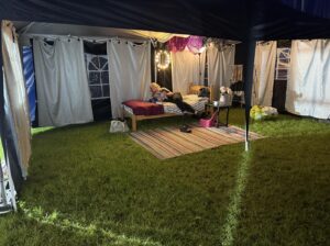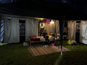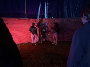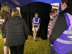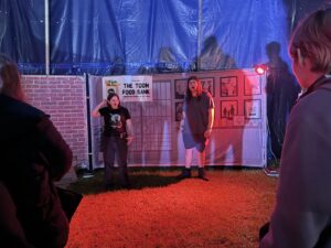 The Toon is delivered within a big top tent with the whole production running within this structure. Once inside the tent, young people are allocated to a tour, and their tour guide will then escort them through the different scenes. Each scene is delivered by young people, and a different topic is covered within each scene. At the end of the tour the young people go through a debrief zone delivered by professionals from different youth work agencies to allow for discussion on what the young people have experienced.