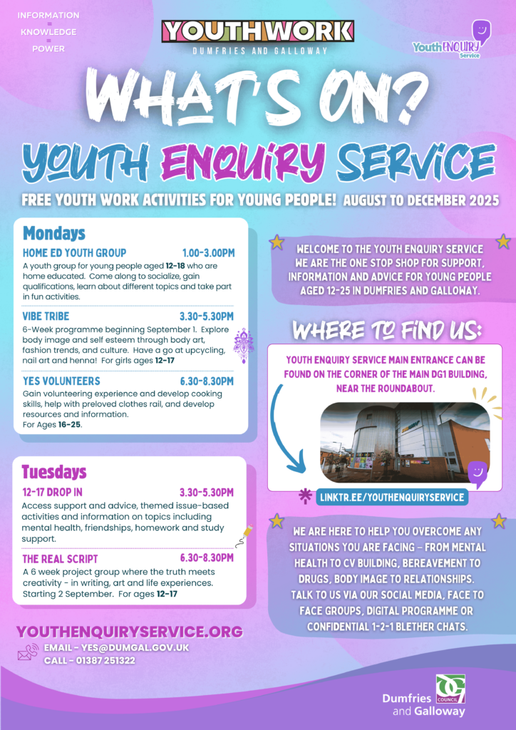 Access support and advice, support with CVs, jobs and get information on topics important to you including mental health, money and more. For 16-25yrs