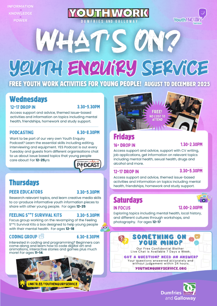 Access support and advice, themed issue-based activities & information on topics including mental health, friendships, school & jobs, as well as some fun Easter activities. For 12-17yrs