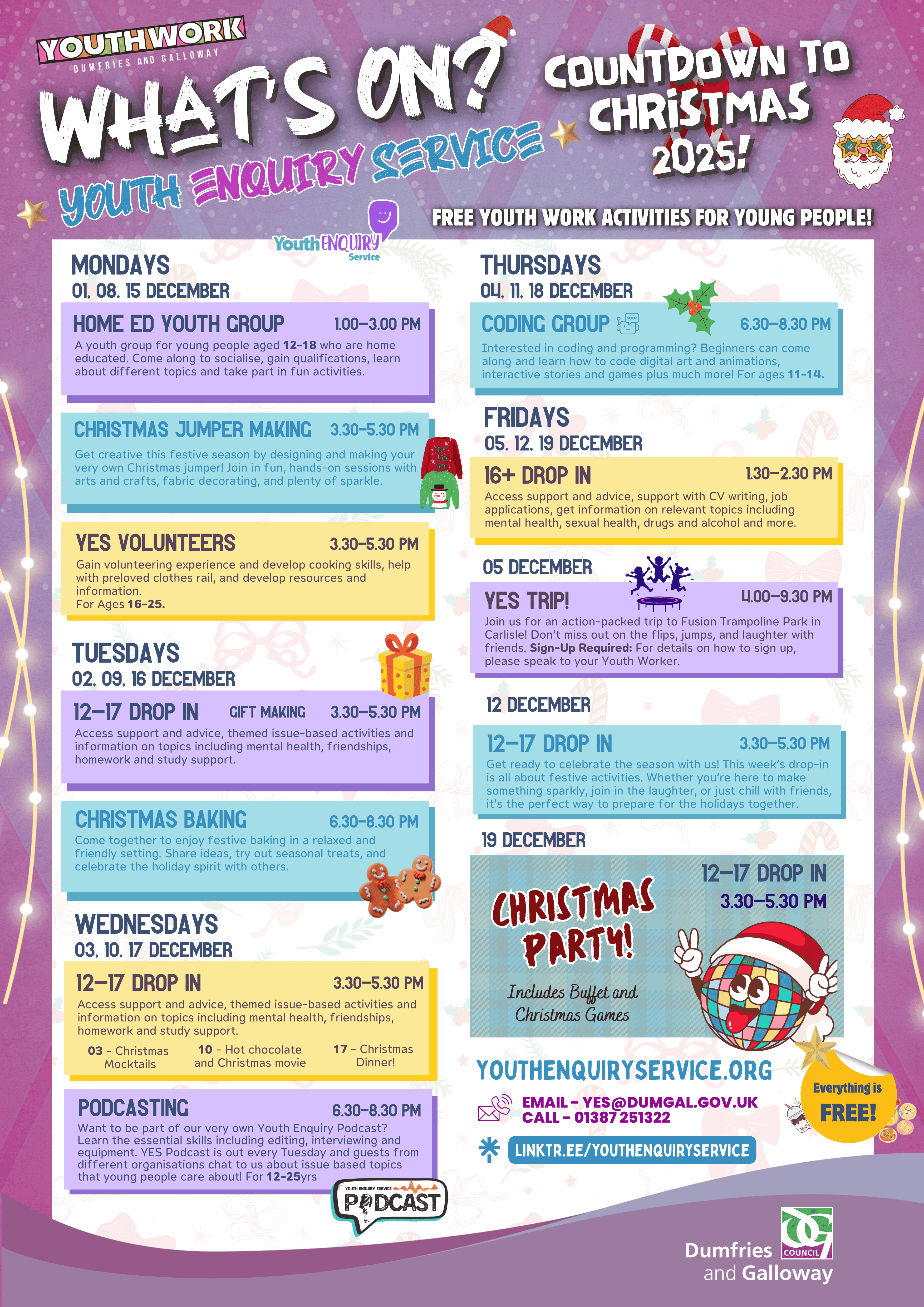 Have a look at the programme below and take part in a range of activities, programmes, workshops, trips and experiences!